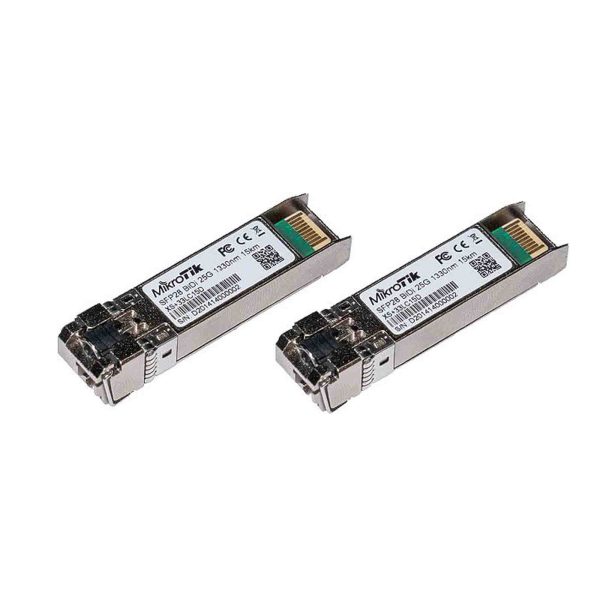 El MikroTik  XS+2733LC15D  es un conjunto de dos adaptadores SFP/SFP+/SFP28 de 1/10/25 Gbps para fibra monomodo. Los adaptadores cuentan con un conector LC/UPC, transmiten a longitudes de onda de 1270 nm y 1330 nm, y tienen un alcance máximo de aproximadamente 15 km (potencia de transmisión de 2 dBm).